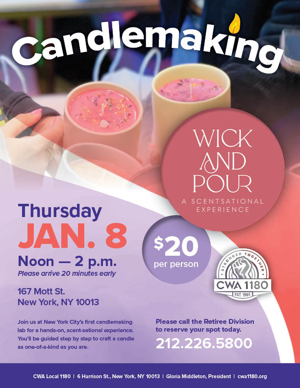| Tues. 1/20 | IN-PERSON Review of Online Lessons / Q&A | 6 Harrison St. Call the Retiree Division to reserve your spot today: 212.226.5800 |